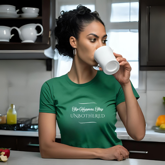 Sip Happens Stay Unbothered T-Shirt | Spirits, Tea, and Coffee Lovers– Casual Graphic Shirt, feminine fit